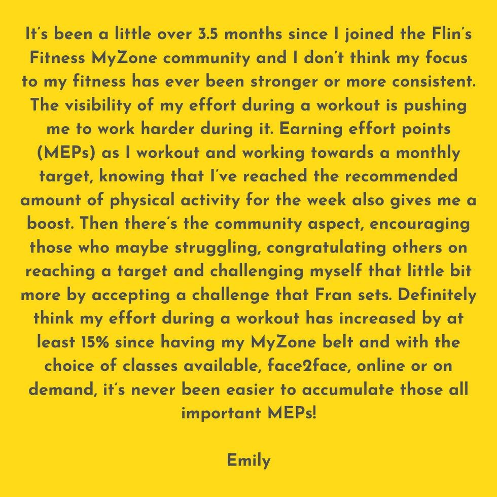 I would like to add to our Myzone Flin's community, and have 3 straps for sale. They are £65 as a one off payment, no other fees at all! You can use them in your FF classes, or if you go for a run, dancing, walking, whatever! There is a monthly goal of 1,300 Myzone Effort Points (MEPS), which is the World Health Organisation's recommendation to keep fit! Then there is an opportunity to join our February Fitness Challenge - this month I'm challenging everyone to hit 500 MEPS a week during the 4 weeks of Feb. Fancy it?